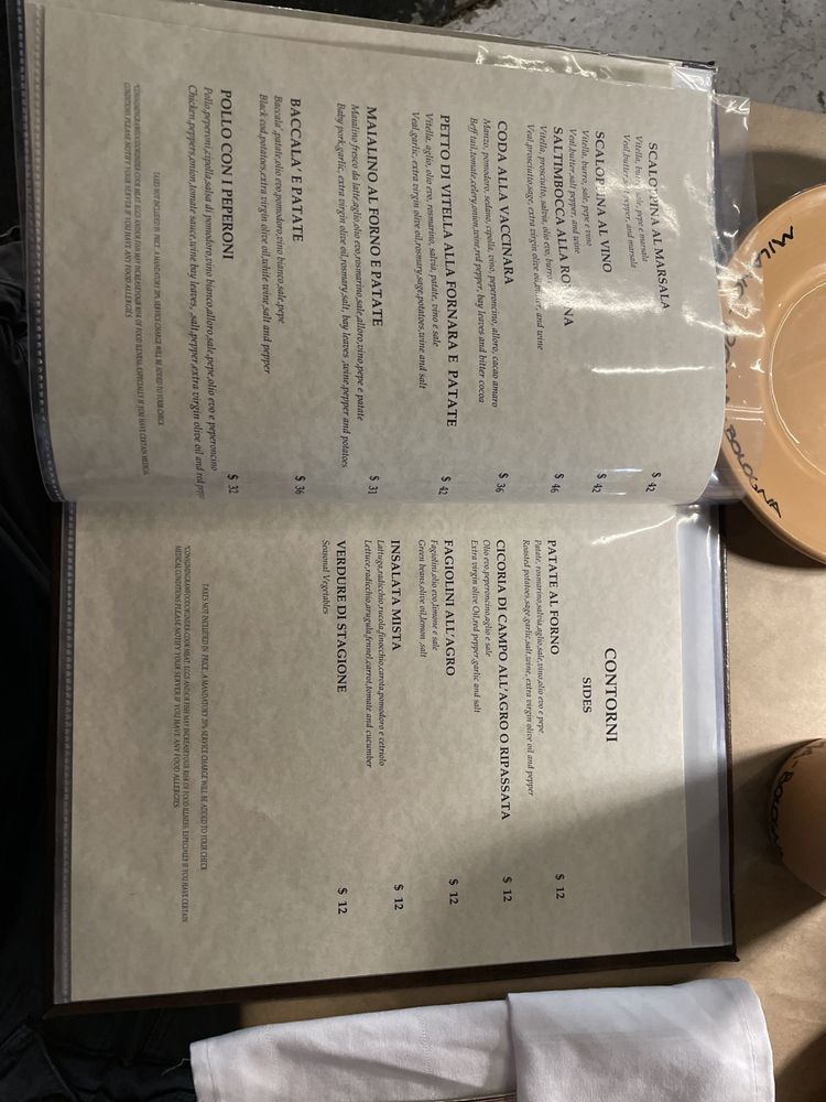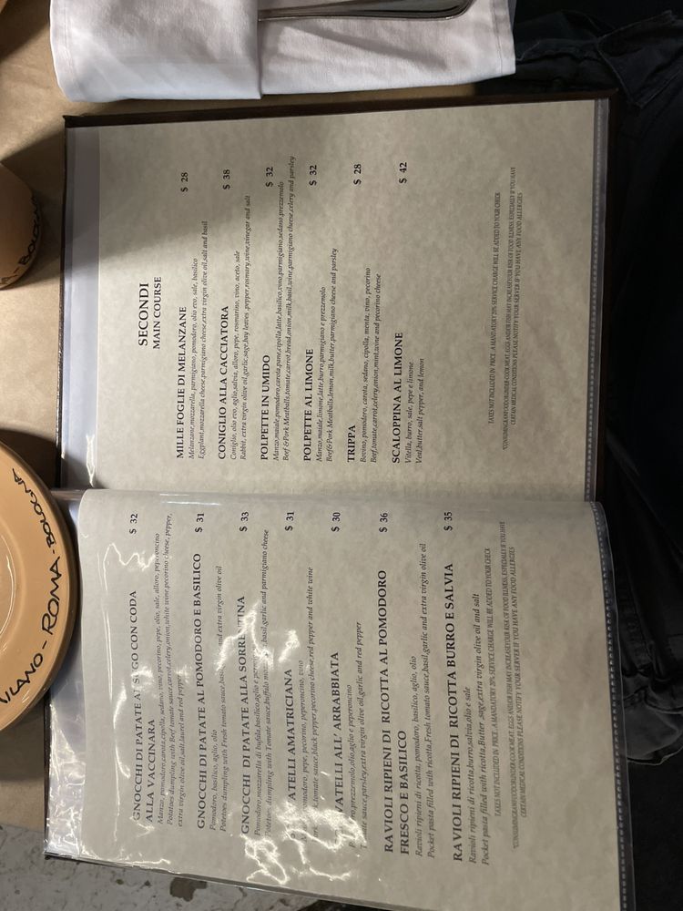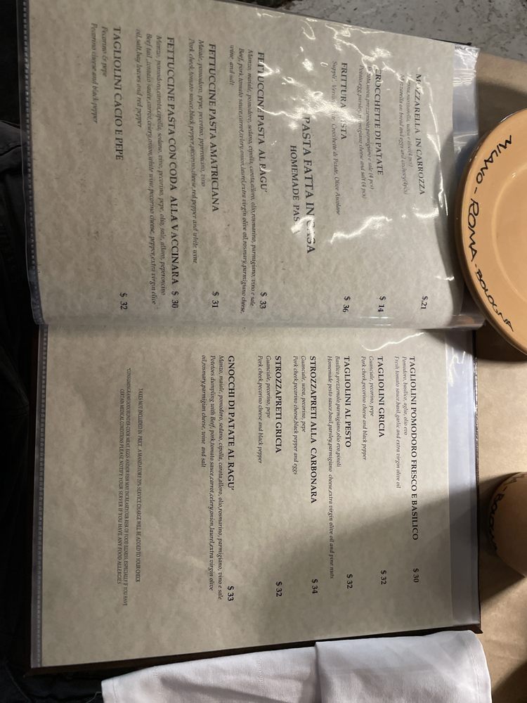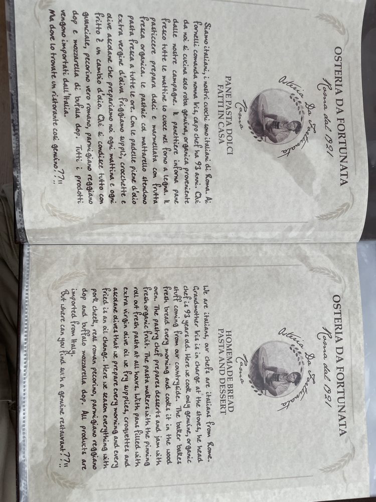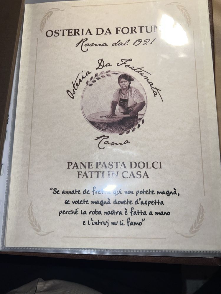 Osteria Da Fortunata Italian Restaurant Menu